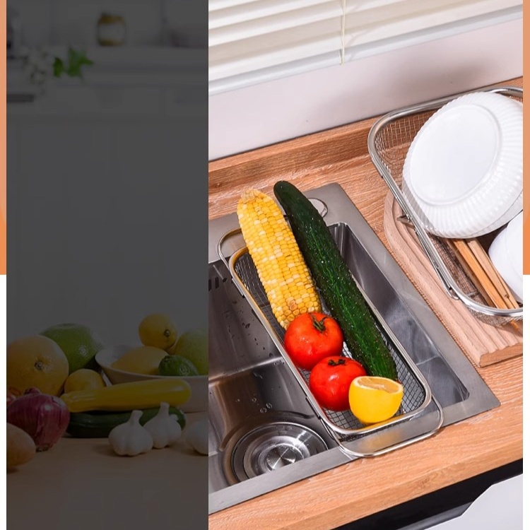 キッチン用ステンレス伸縮水切りバスケット